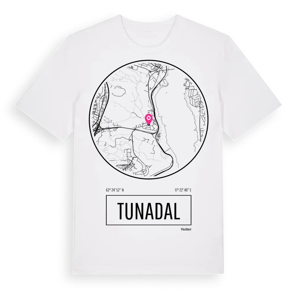 Tunadal t-shirt är inspirerad av byn Tunadal i Västernorrlands län, Sverige. Tröjan är designad för dig som har en speciell koppling till platsen – oavsett om du bor här, har rötterna här eller bara älskar Tunadal.