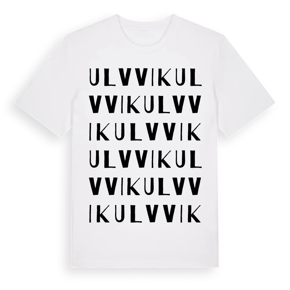 Ulvvik ordlek t-shirt är inspirerad av byn Ulvvik i Västernorrlands län, Sverige. Tröjan är designad för dig som har en speciell koppling till platsen – oavsett om du bor här, har rötterna här eller bara älskar Ulvvik.