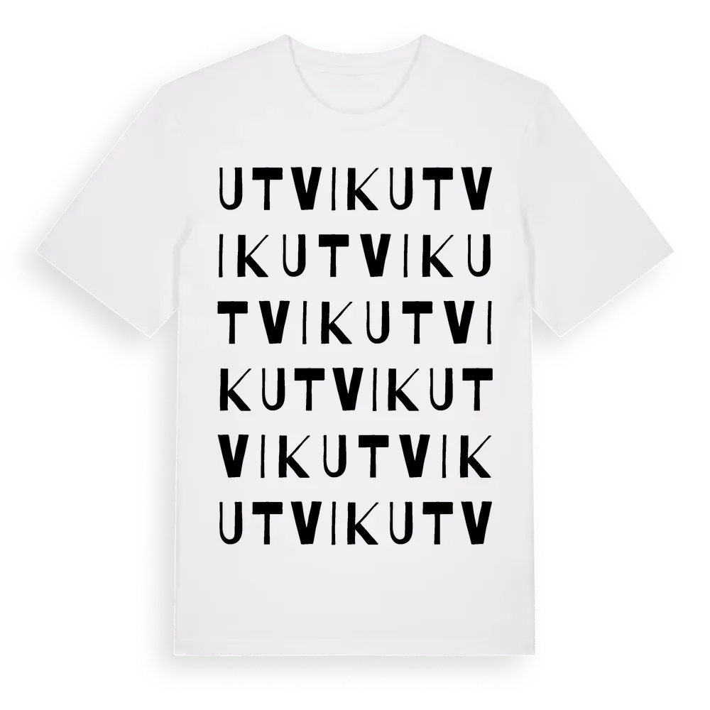 Utvik ordlek t-shirt är inspirerad av byn Utvik i Västernorrlands län, Sverige. Tröjan är designad för dig som har en speciell koppling till platsen – oavsett om du bor här, har rötterna här eller bara älskar Utvik.