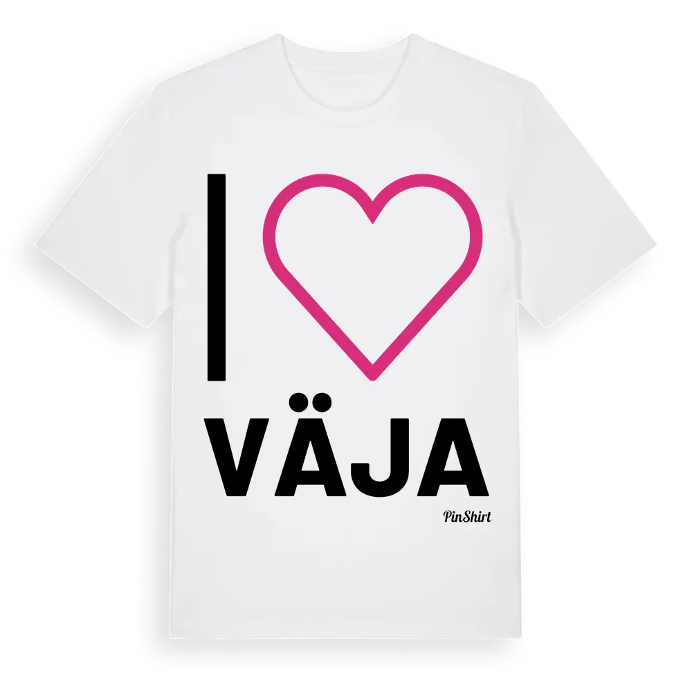 Det klassiska "I ❤ Väja"-motivet i stort format som täcker hela bröstet. För dig som vill visa kärleken till Väja på riktigt. Premium bomull, unisex – från byn Väja i Västernorrlands län.