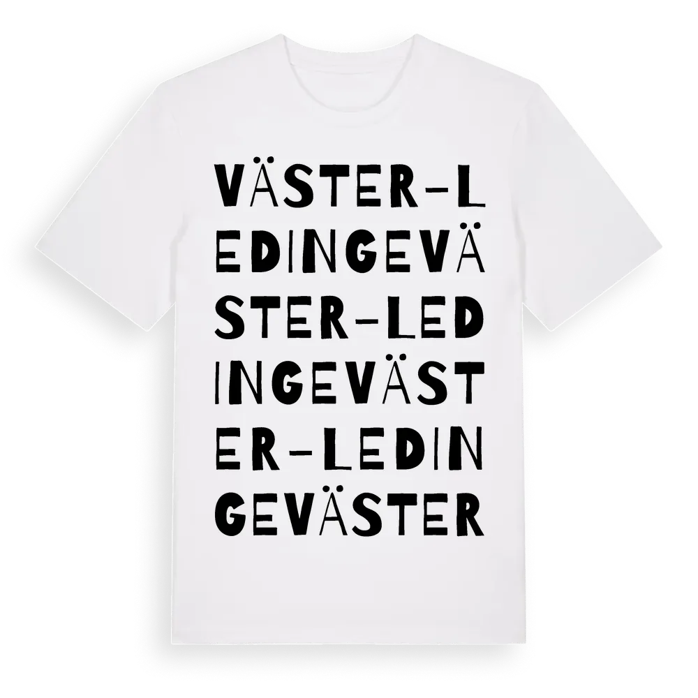Väster-Ledinge ordlek t-shirt är inspirerad av byn Väster-Ledinge i Västernorrlands län, Sverige. Tröjan är designad för dig som har en speciell koppling till platsen – oavsett om du bor här, har rötterna här eller bara älskar Väster-Ledinge.