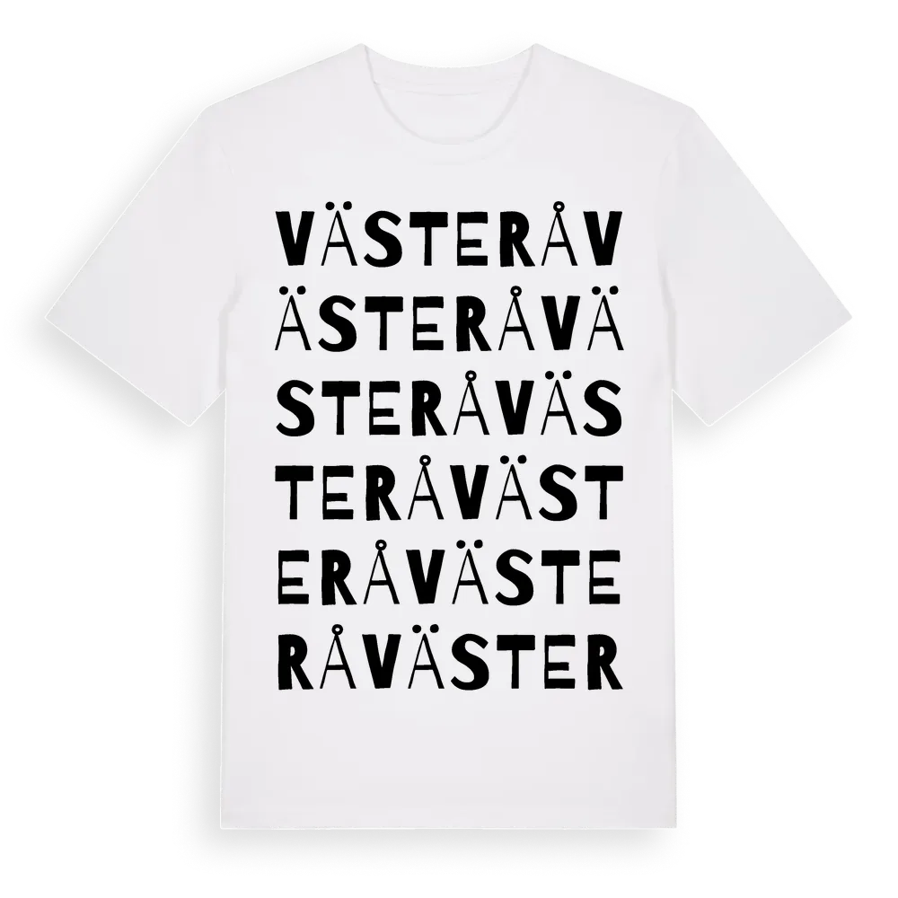 Västerå ordlek t-shirt är inspirerad av byn Västerå i Västernorrlands län, Sverige. Tröjan är designad för dig som har en speciell koppling till platsen – oavsett om du bor här, har rötterna här eller bara älskar Västerå.