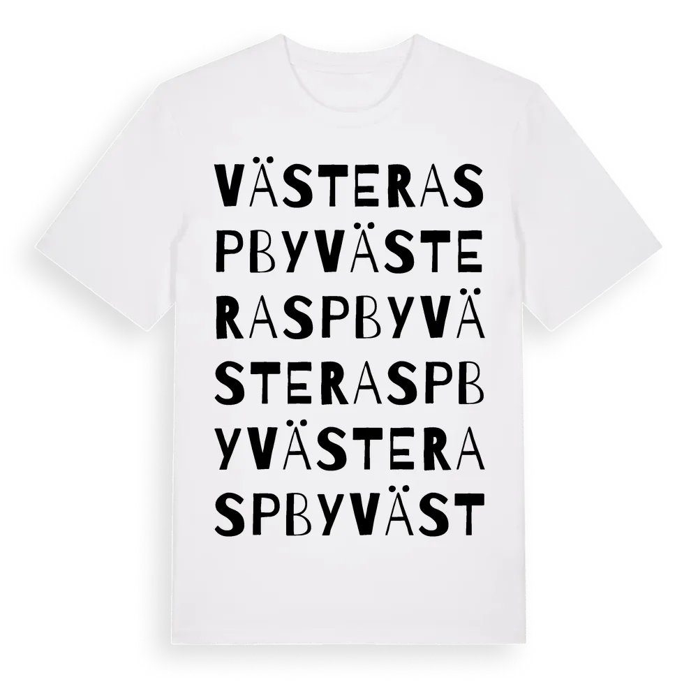 Västeraspby ordlek t-shirt är inspirerad av byn Västeraspby i Västernorrlands län, Sverige. Tröjan är designad för dig som har en speciell koppling till platsen – oavsett om du bor här, har rötterna här eller bara älskar Västeraspby.