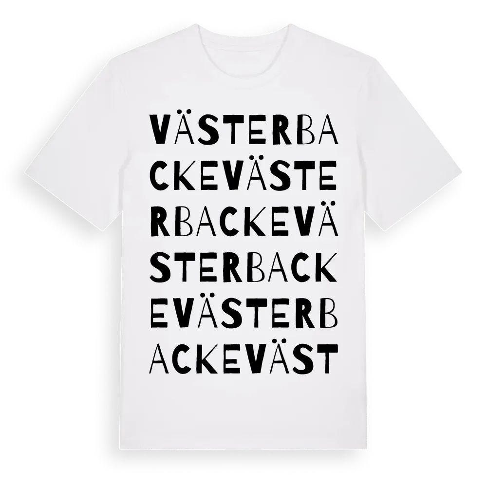 Västerbacke ordlek t-shirt är inspirerad av byn Västerbacke i Västernorrlands län, Sverige. Tröjan är designad för dig som har en speciell koppling till platsen – oavsett om du bor här, har rötterna här eller bara älskar Västerbacke.