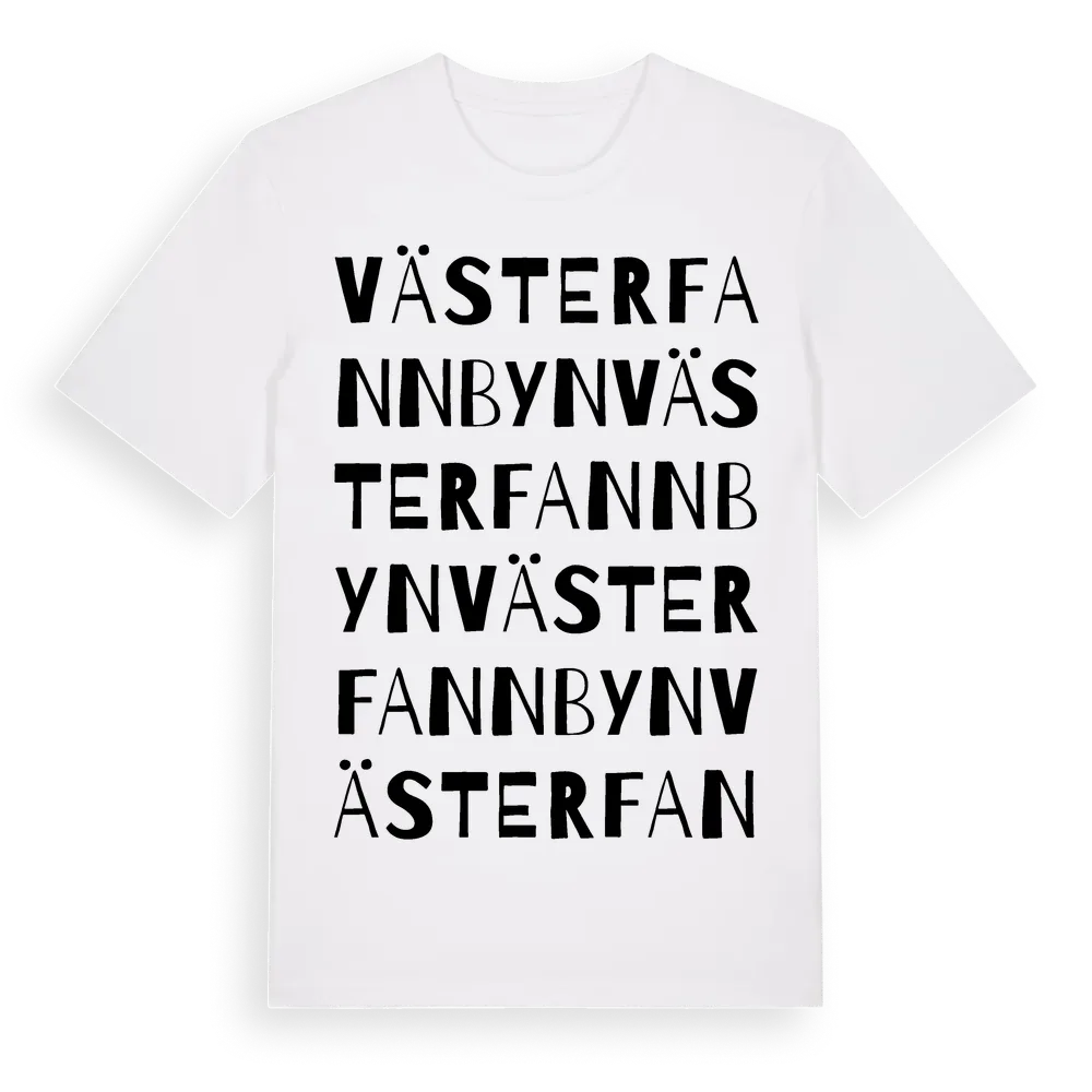 Västerfannbyn ordlek t-shirt är inspirerad av byn Västerfannbyn i Västernorrlands län, Sverige. Tröjan är designad för dig som har en speciell koppling till platsen – oavsett om du bor här, har rötterna här eller bara älskar Västerfannbyn.