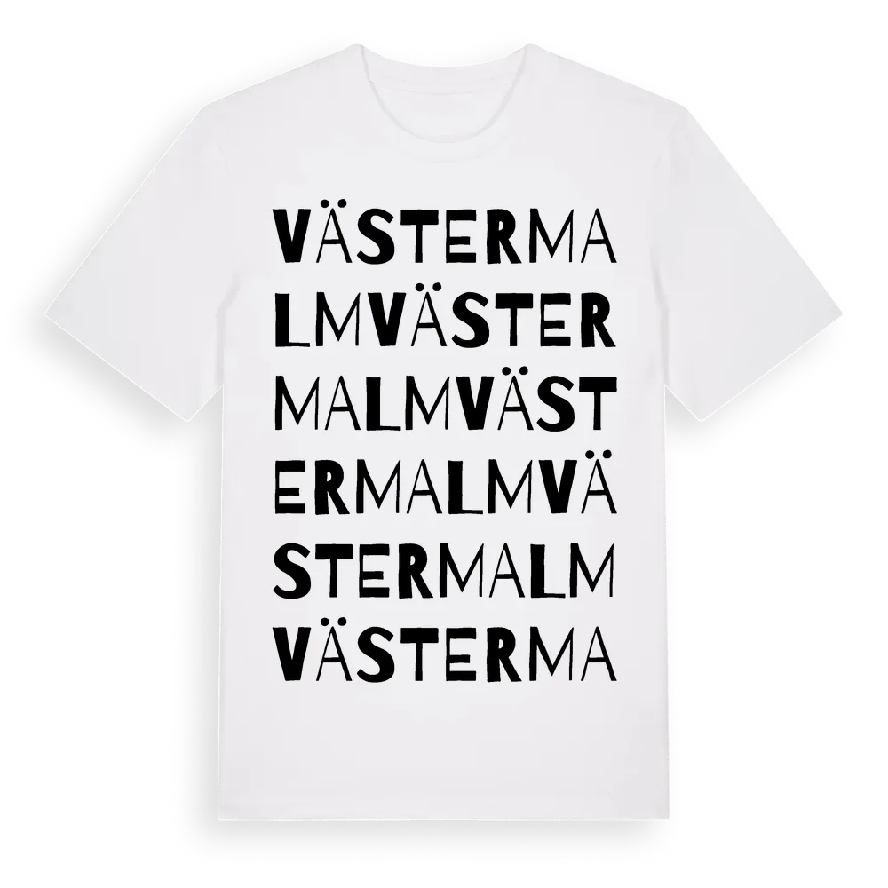 Västermalm ordlek t-shirt är inspirerad av stadsdelen Västermalm i Västernorrlands län, Sverige. Tröjan är designad för dig som har en speciell koppling till platsen – oavsett om du bor här, har rötterna här eller bara älskar Västermalm.