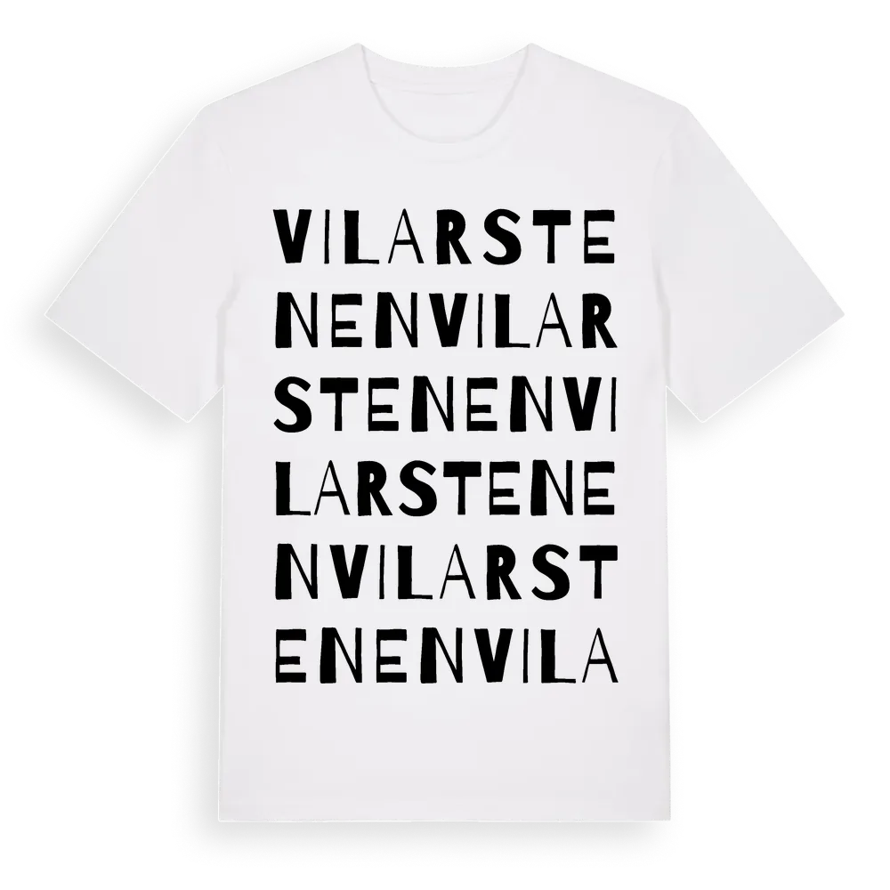 Vilarstenen ordlek t-shirt är inspirerad av Vilarstenen i Västernorrlands län, Sverige. Tröjan är designad för dig som har en speciell koppling till platsen – oavsett om du bor här, har rötterna här eller bara älskar Vilarstenen.