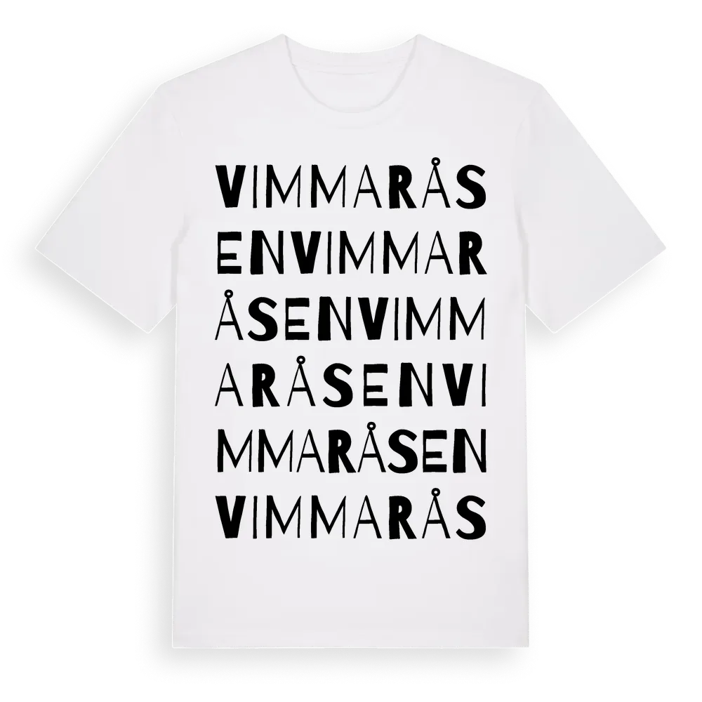 Vimmaråsen ordlek t-shirt är inspirerad av byn Vimmaråsen i Västernorrlands län, Sverige. Tröjan är designad för dig som har en speciell koppling till platsen – oavsett om du bor här, har rötterna här eller bara älskar Vimmaråsen.