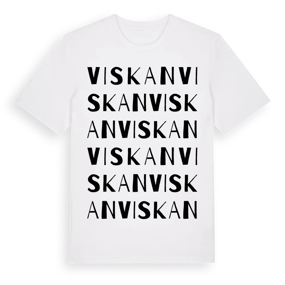 Viskan ordlek t-shirt är inspirerad av byn Viskan i Västernorrlands län, Sverige. Tröjan är designad för dig som har en speciell koppling till platsen – oavsett om du bor här, har rötterna här eller bara älskar Viskan.