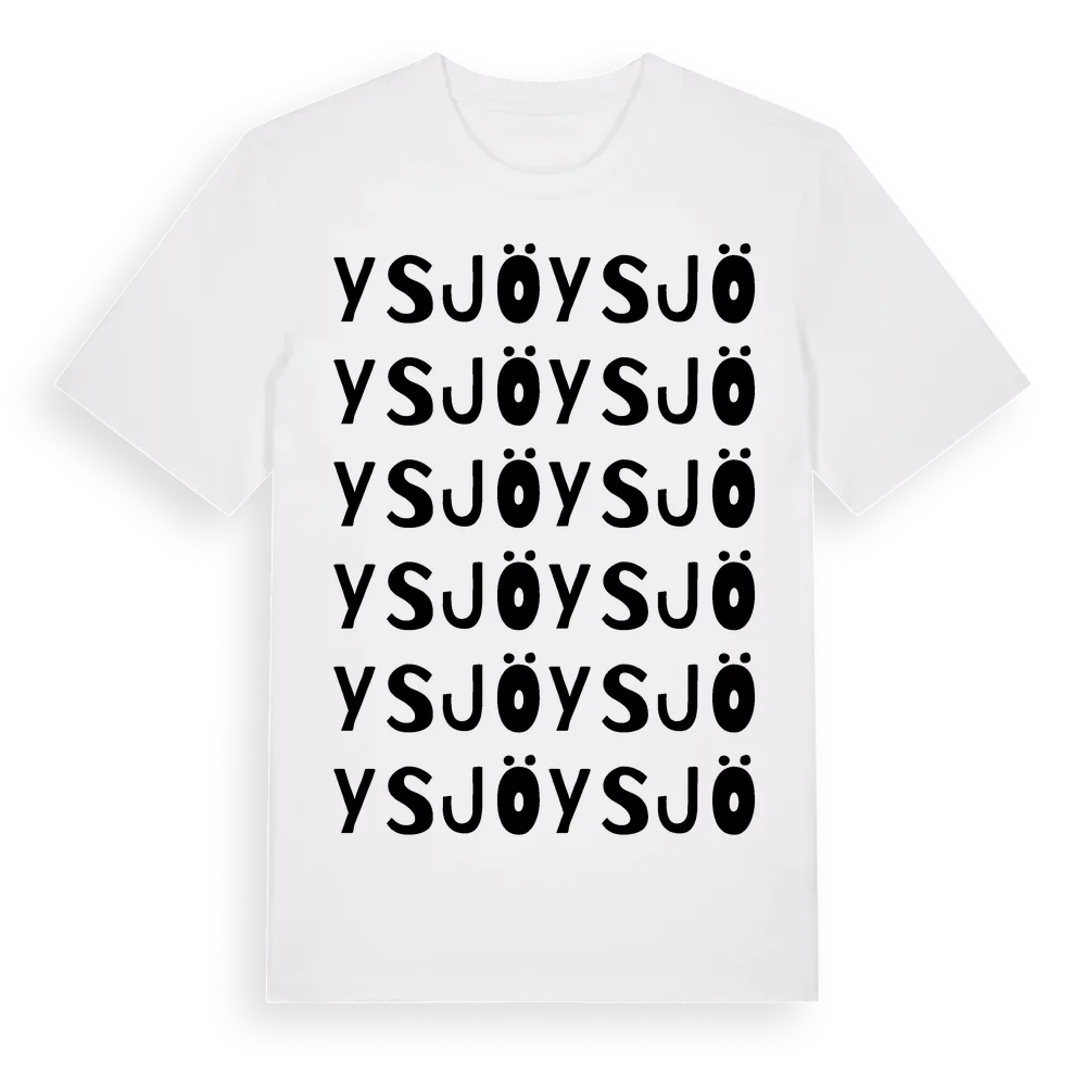 Ysjö ordlek t-shirt är inspirerad av byn Ysjö i Västernorrlands län, Sverige. Tröjan är designad för dig som har en speciell koppling till platsen – oavsett om du bor här, har rötterna här eller bara älskar Ysjö.