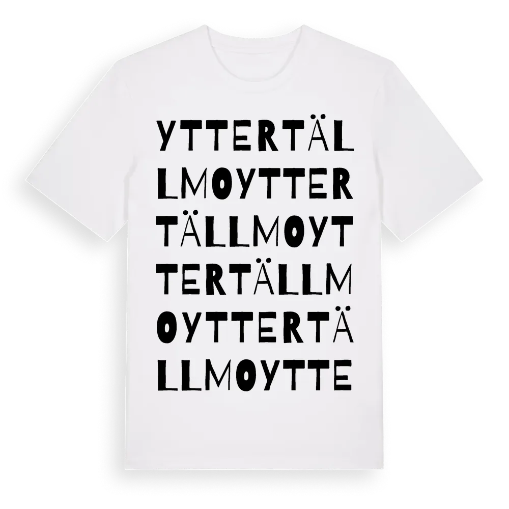 En ordlek byggd på Yttertällmos namn. Subtilt och klurig – ett motiv som bara de som verkligen känner platsen fullt ut förstår. Premium bomull, unisex – från byn Yttertällmo i Västernorrlands län.