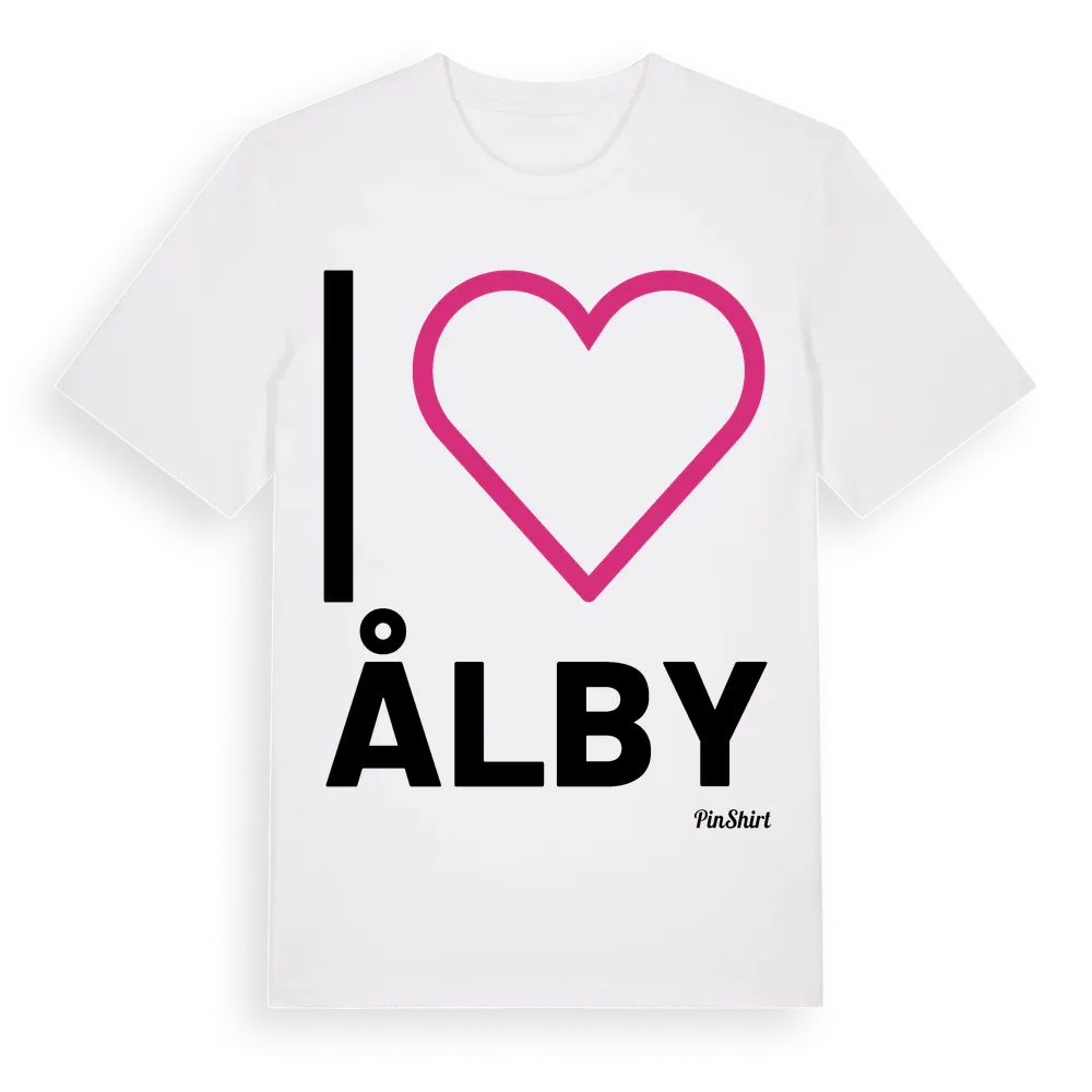 Det klassiska "I ❤ Ålby"-motivet i stort format som täcker hela bröstet. För dig som vill visa kärleken till Ålby på riktigt. Premium bomull, unisex – från Ålby i Västmanlands län.