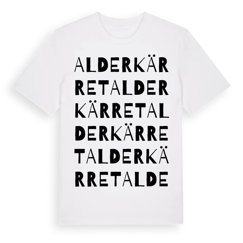 Alderkärret ordlek t-shirt är inspirerad av Alderkärret i Västmanlands län, Sverige. Tröjan är designad för dig som har en speciell koppling till platsen – oavsett om du bor här, har rötterna här eller bara älskar Alderkärret.