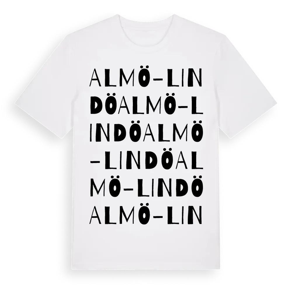 Almö-Lindö ordlek t-shirt är inspirerad av ön Almö-Lindö i Västmanlands län, Sverige. Tröjan är designad för dig som har en speciell koppling till platsen – oavsett om du bor här, har rötterna här eller bara älskar Almö-Lindö.