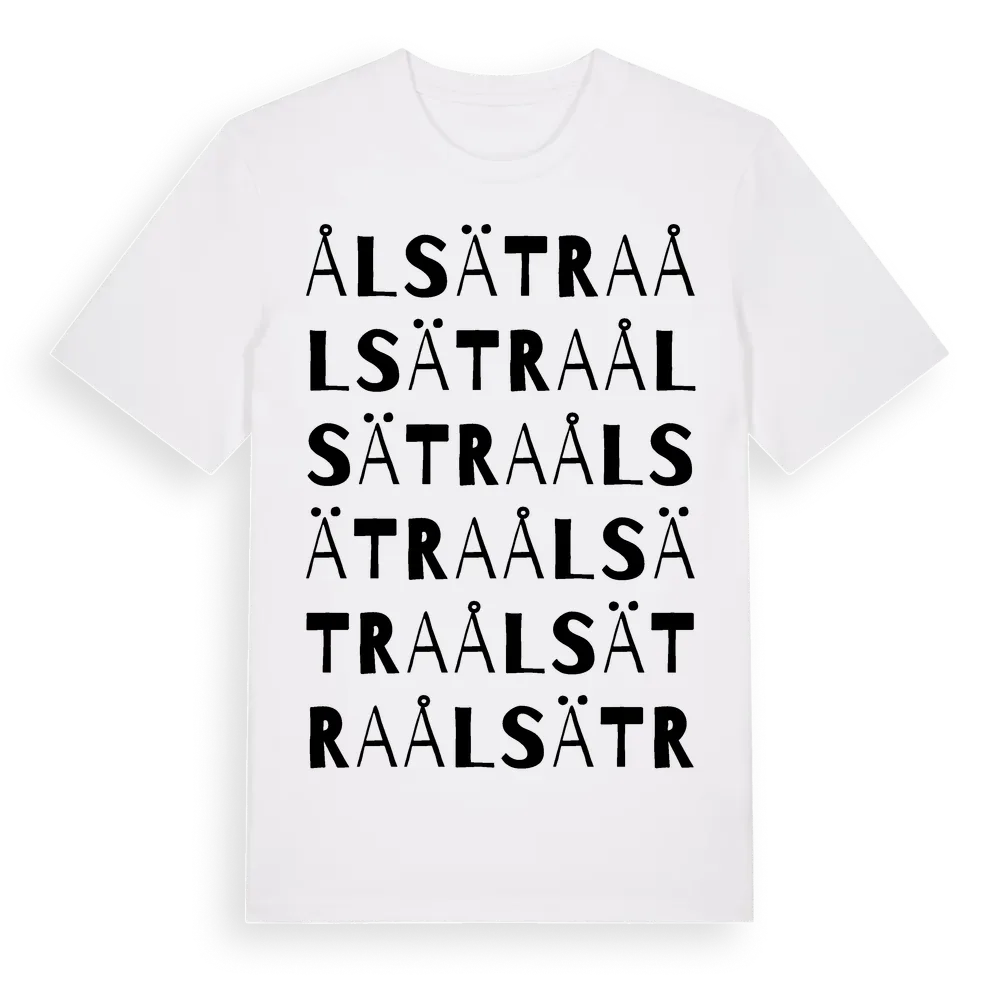 Ålsätra ordlek t-shirt är inspirerad av Ålsätra i Västmanlands län, Sverige. Tröjan är designad för dig som har en speciell koppling till platsen – oavsett om du bor här, har rötterna här eller bara älskar Ålsätra.