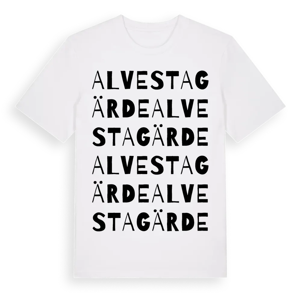 Alvestagärde ordlek t-shirt är inspirerad av Alvestagärde i Västmanlands län, Sverige. Tröjan är designad för dig som har en speciell koppling till platsen – oavsett om du bor här, har rötterna här eller bara älskar Alvestagärde.