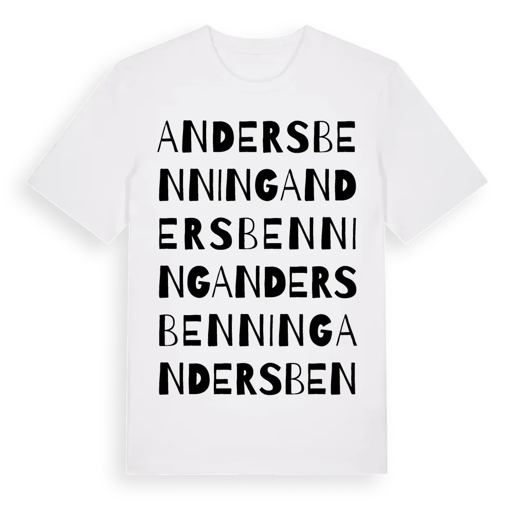 Andersbenning ordlek t-shirt är inspirerad av byn Andersbenning i Västmanlands län, Sverige. Tröjan är designad för dig som har en speciell koppling till platsen – oavsett om du bor här, har rötterna här eller bara älskar Andersbenning.