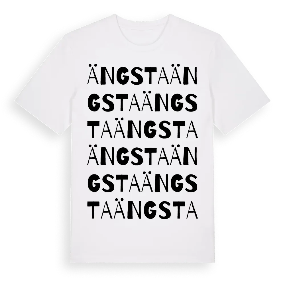 Ängsta ordlek t-shirt är inspirerad av byn Ängsta i Västmanlands län, Sverige. Tröjan är designad för dig som har en speciell koppling till platsen – oavsett om du bor här, har rötterna här eller bara älskar Ängsta.