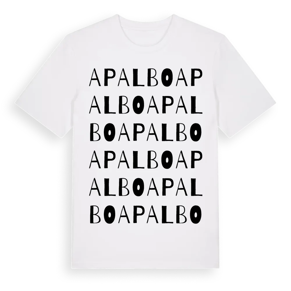 Apalbo ordlek t-shirt är inspirerad av Apalbo i Västmanlands län, Sverige. Tröjan är designad för dig som har en speciell koppling till platsen – oavsett om du bor här, har rötterna här eller bara älskar Apalbo.