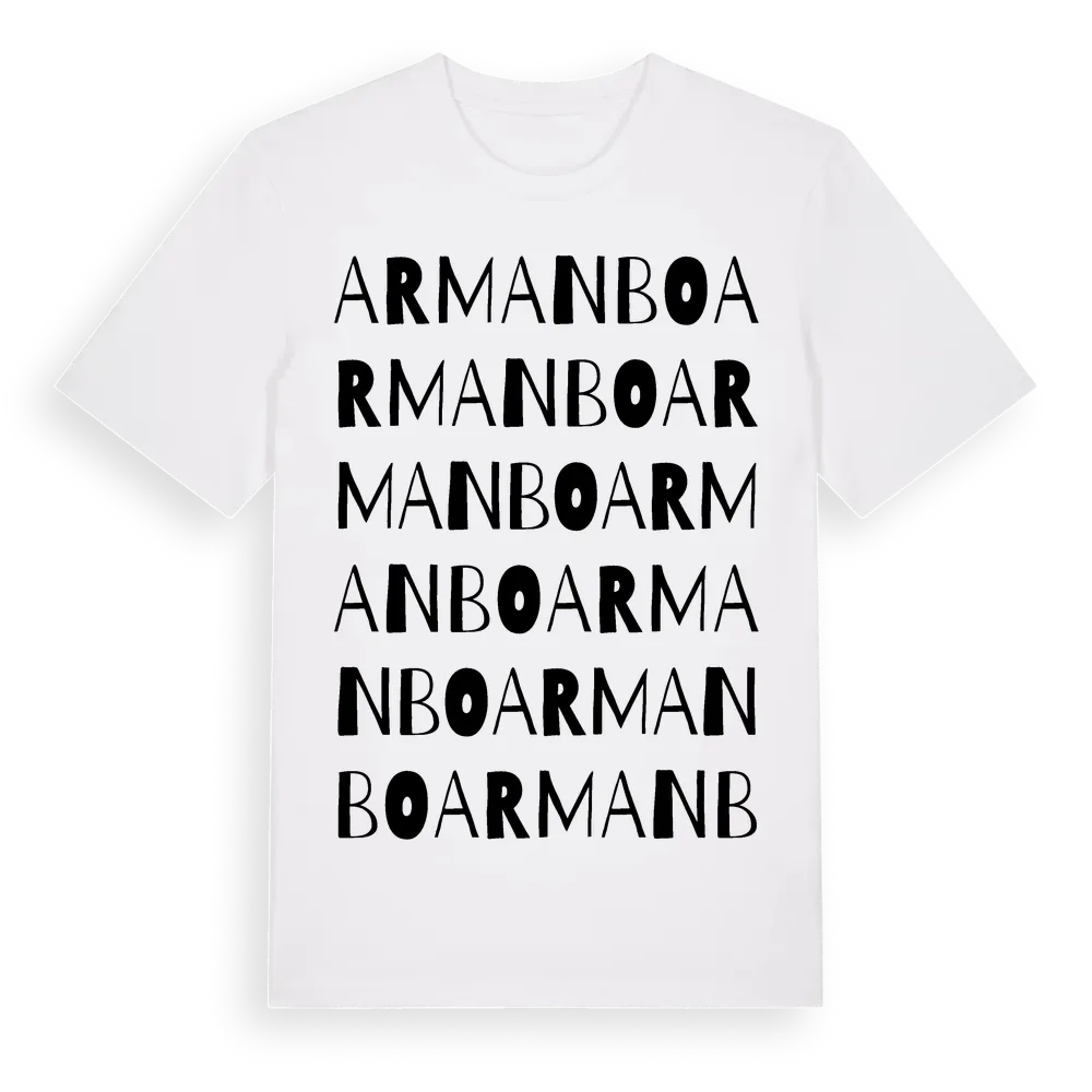 Armanbo ordlek t-shirt är inspirerad av byn Armanbo i Västmanlands län, Sverige. Tröjan är designad för dig som har en speciell koppling till platsen – oavsett om du bor här, har rötterna här eller bara älskar Armanbo.