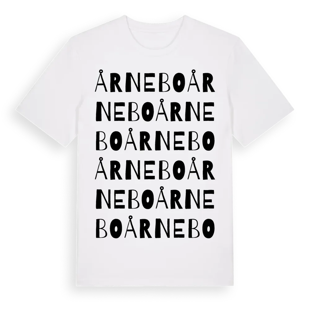 Årnebo ordlek t-shirt är inspirerad av byn Årnebo i Västmanlands län, Sverige. Tröjan är designad för dig som har en speciell koppling till platsen – oavsett om du bor här, har rötterna här eller bara älskar Årnebo.