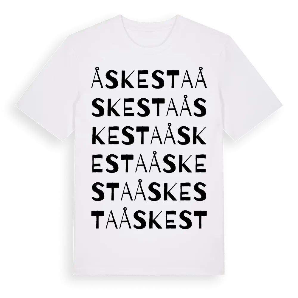 Åskesta ordlek t-shirt är inspirerad av byn Åskesta i Västmanlands län, Sverige. Tröjan är designad för dig som har en speciell koppling till platsen – oavsett om du bor här, har rötterna här eller bara älskar Åskesta.