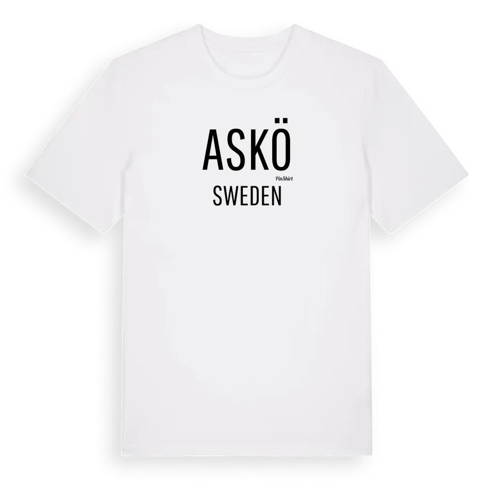 Askö i Sverige t-shirt är inspirerad av stadsdelen Askö i Västmanlands län, Sverige. Tröjan är designad för dig som har en speciell koppling till platsen – oavsett om du bor här, har rötterna här eller bara älskar Askö.