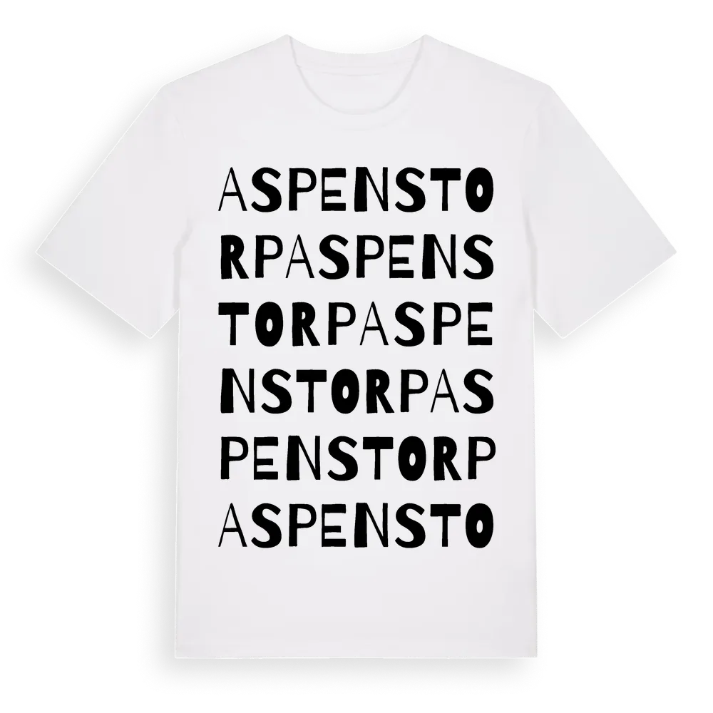 Aspenstorp ordlek t-shirt är inspirerad av stadsdelen Aspenstorp i Västmanlands län, Sverige. Tröjan är designad för dig som har en speciell koppling till platsen – oavsett om du bor här, har rötterna här eller bara älskar Aspenstorp.
