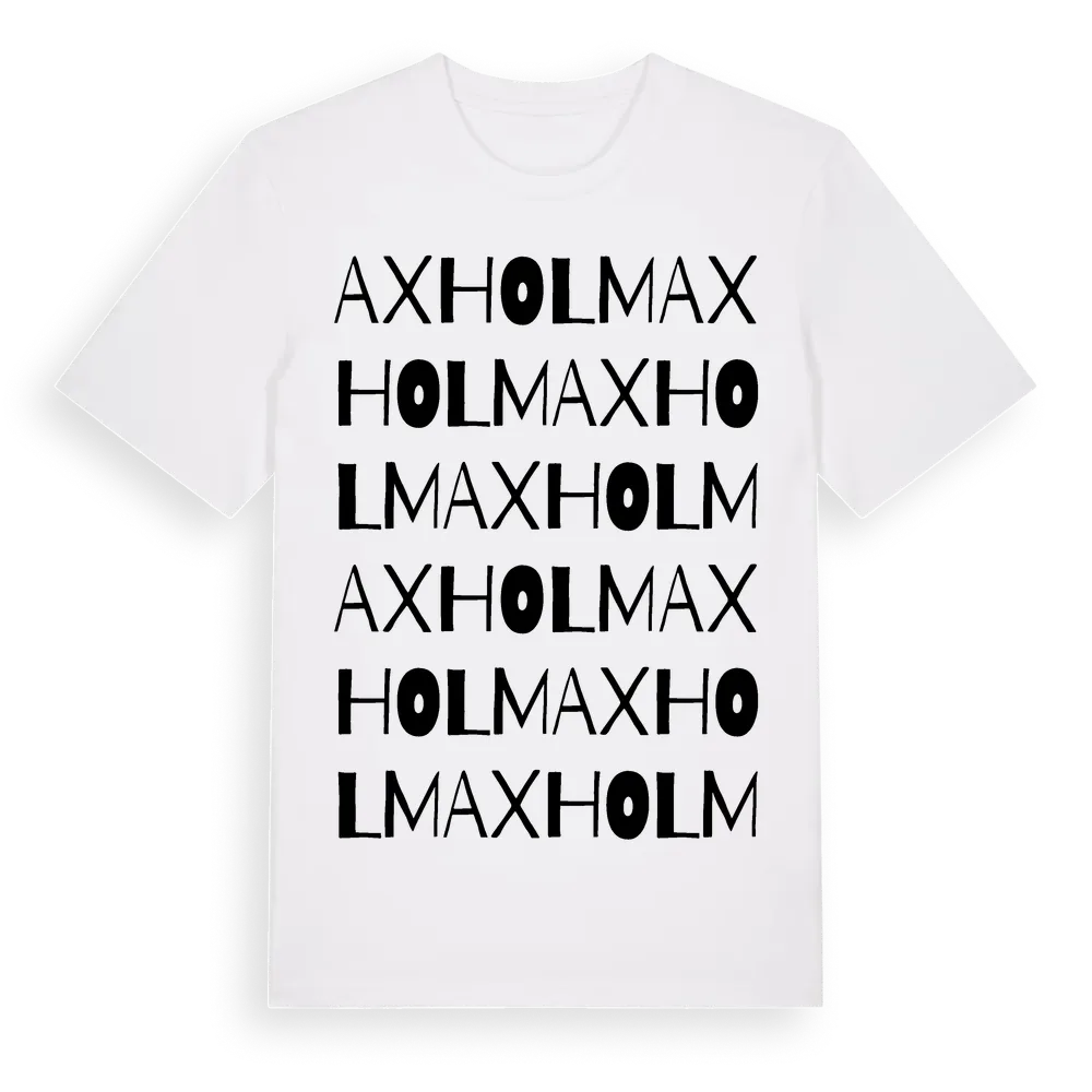 Axholm ordlek t-shirt är inspirerad av byn Axholm i Västmanlands län, Sverige. Tröjan är designad för dig som har en speciell koppling till platsen – oavsett om du bor här, har rötterna här eller bara älskar Axholm.
