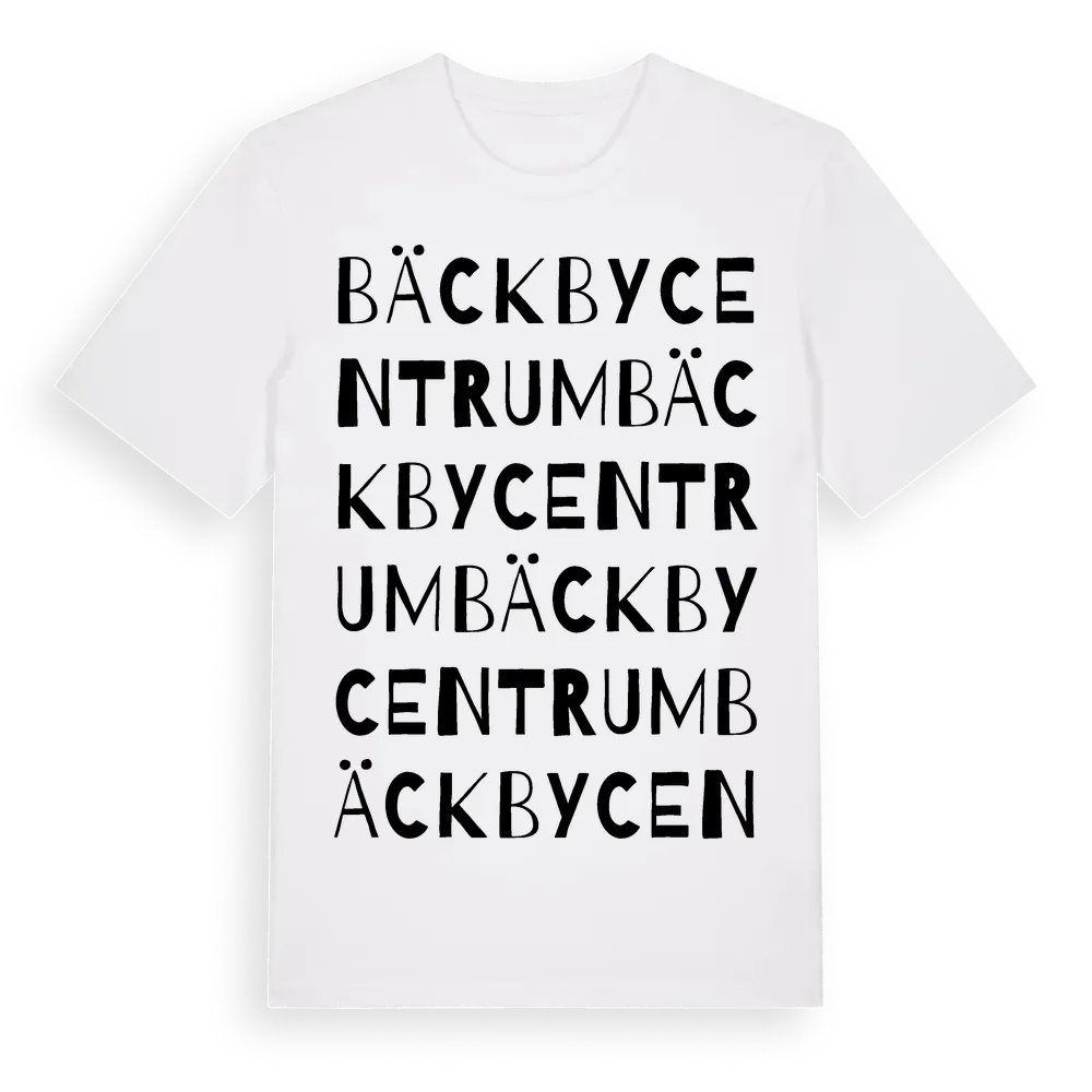 Bäckby Centrum ordlek t-shirt är inspirerad av Bäckby Centrum i Västmanlands län, Sverige. Tröjan är designad för dig som har en speciell koppling till platsen – oavsett om du bor här, har rötterna här eller bara älskar Bäckby Centrum.