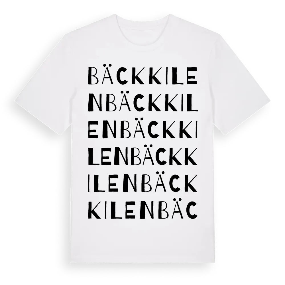 Bäckkilen ordlek t-shirt är inspirerad av Bäckkilen i Västmanlands län, Sverige. Tröjan är designad för dig som har en speciell koppling till platsen – oavsett om du bor här, har rötterna här eller bara älskar Bäckkilen.