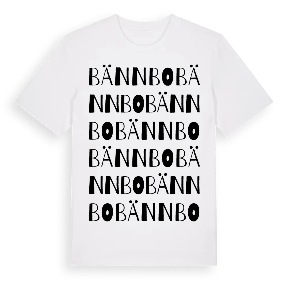 Bännbo ordlek t-shirt är inspirerad av Bännbo i Västmanlands län, Sverige. Tröjan är designad för dig som har en speciell koppling till platsen – oavsett om du bor här, har rötterna här eller bara älskar Bännbo.