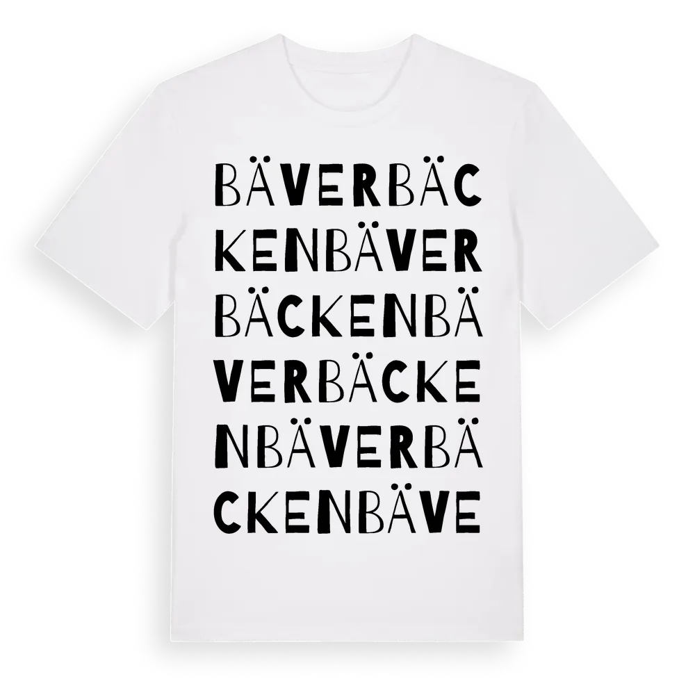 Bäverbäcken ordlek t-shirt är inspirerad av Bäverbäcken i Västmanlands län, Sverige. Tröjan är designad för dig som har en speciell koppling till platsen – oavsett om du bor här, har rötterna här eller bara älskar Bäverbäcken.