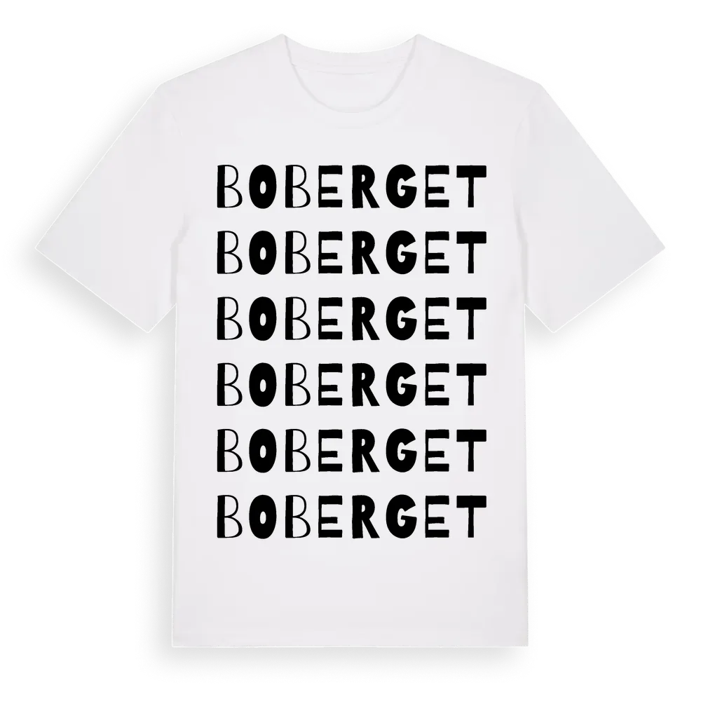 Boberget ordlek t-shirt är inspirerad av Boberget i Västmanlands län, Sverige. Tröjan är designad för dig som har en speciell koppling till platsen – oavsett om du bor här, har rötterna här eller bara älskar Boberget.
