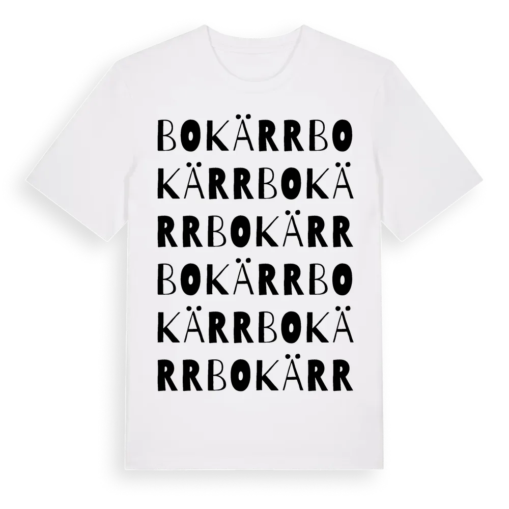 Bokärr ordlek t-shirt är inspirerad av Bokärr i Västmanlands län, Sverige. Tröjan är designad för dig som har en speciell koppling till platsen – oavsett om du bor här, har rötterna här eller bara älskar Bokärr.