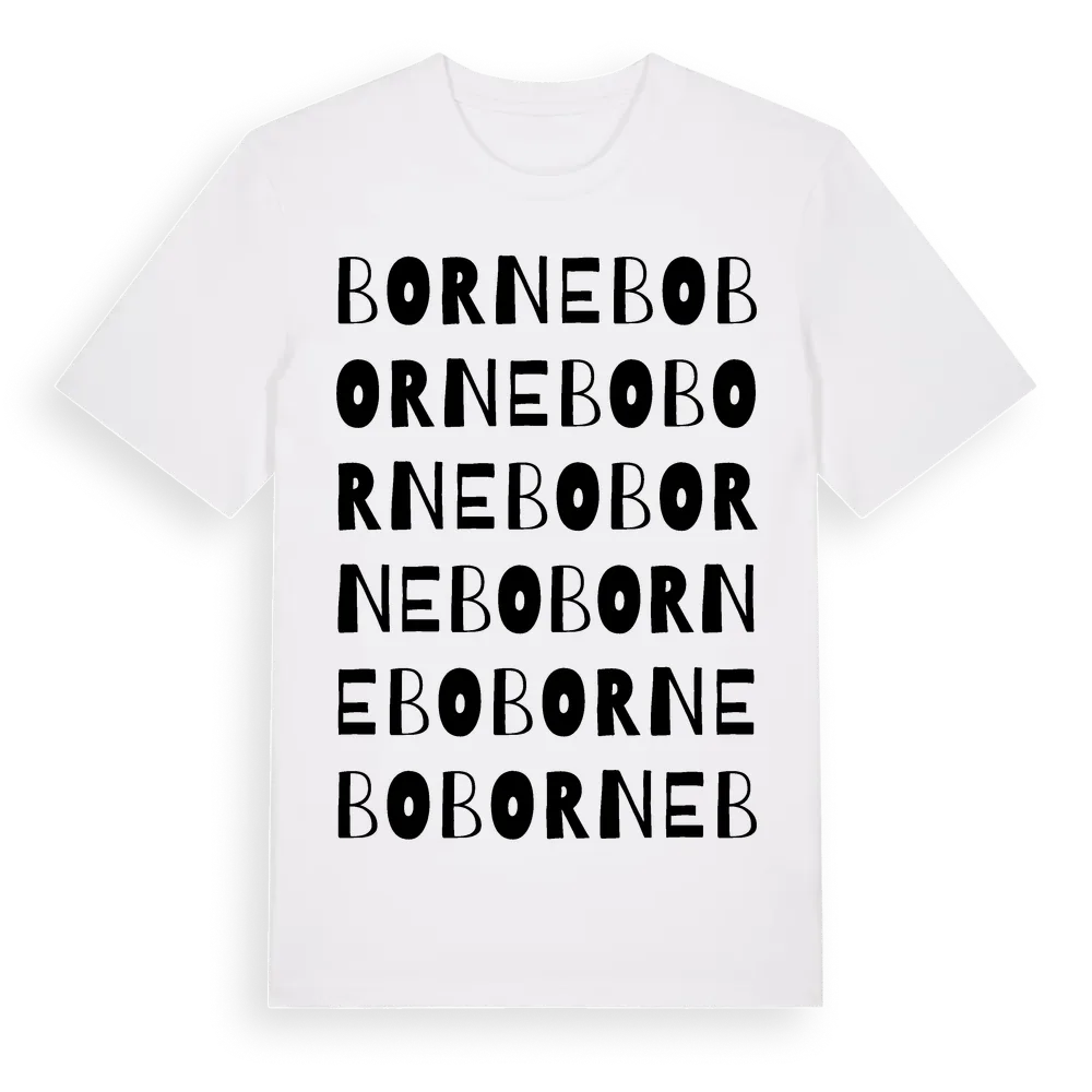 Bornebo ordlek t-shirt är inspirerad av byn Bornebo i Västmanlands län, Sverige. Tröjan är designad för dig som har en speciell koppling till platsen – oavsett om du bor här, har rötterna här eller bara älskar Bornebo.