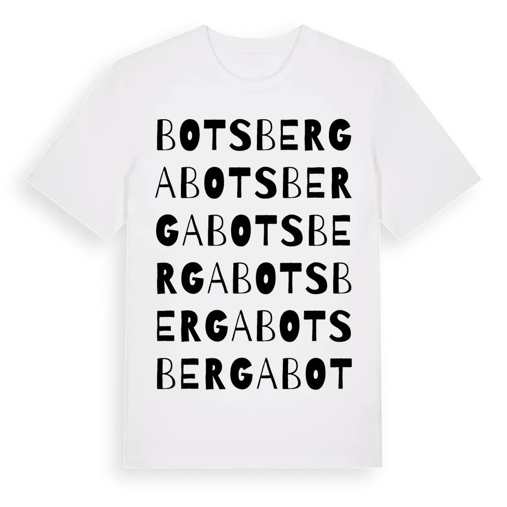 Botsberga ordlek t-shirt är inspirerad av byn Botsberga i Västmanlands län, Sverige. Tröjan är designad för dig som har en speciell koppling till platsen – oavsett om du bor här, har rötterna här eller bara älskar Botsberga.