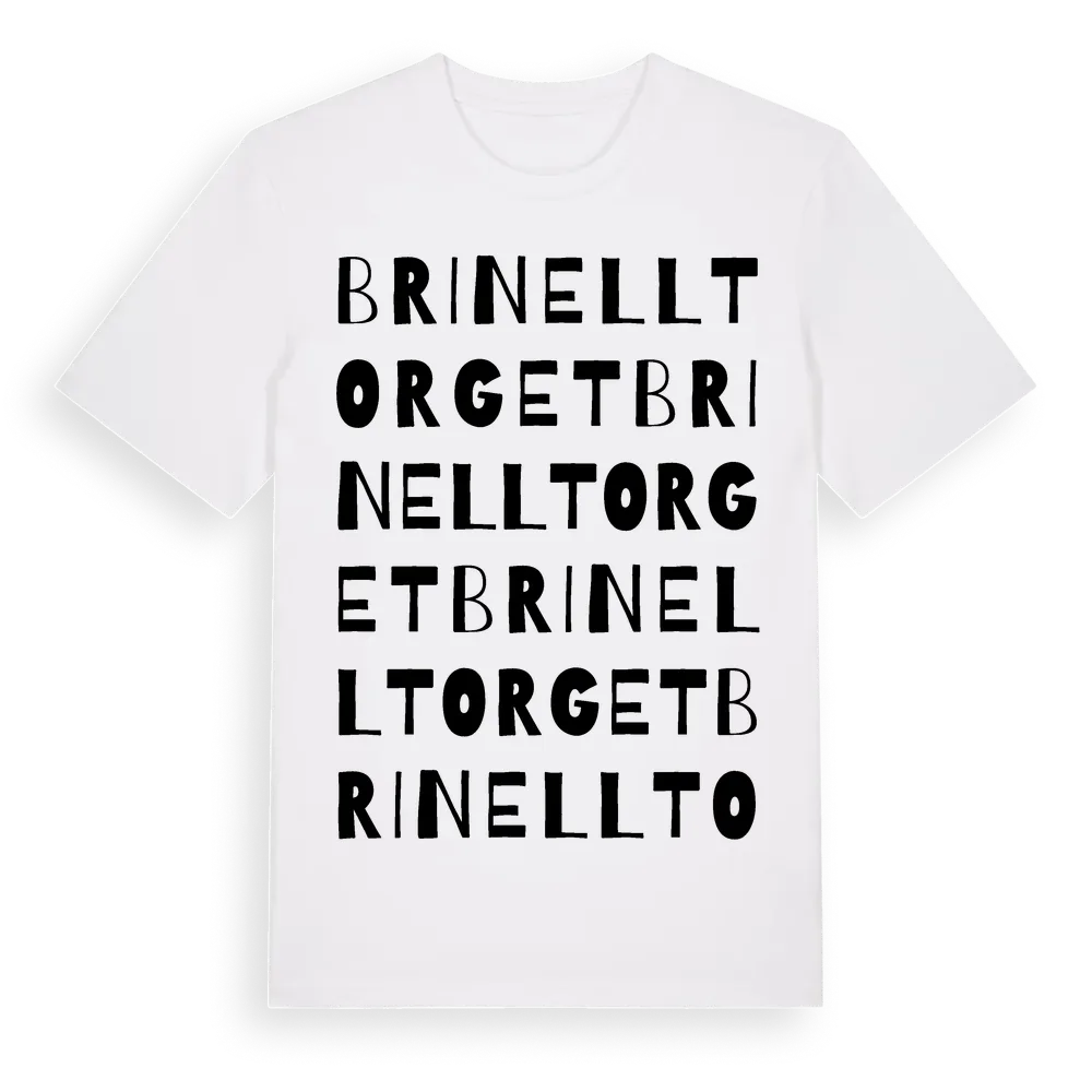 Brinelltorget ordlek t-shirt är inspirerad av Brinelltorget i Västmanlands län, Sverige. Tröjan är designad för dig som har en speciell koppling till platsen – oavsett om du bor här, har rötterna här eller bara älskar Brinelltorget.