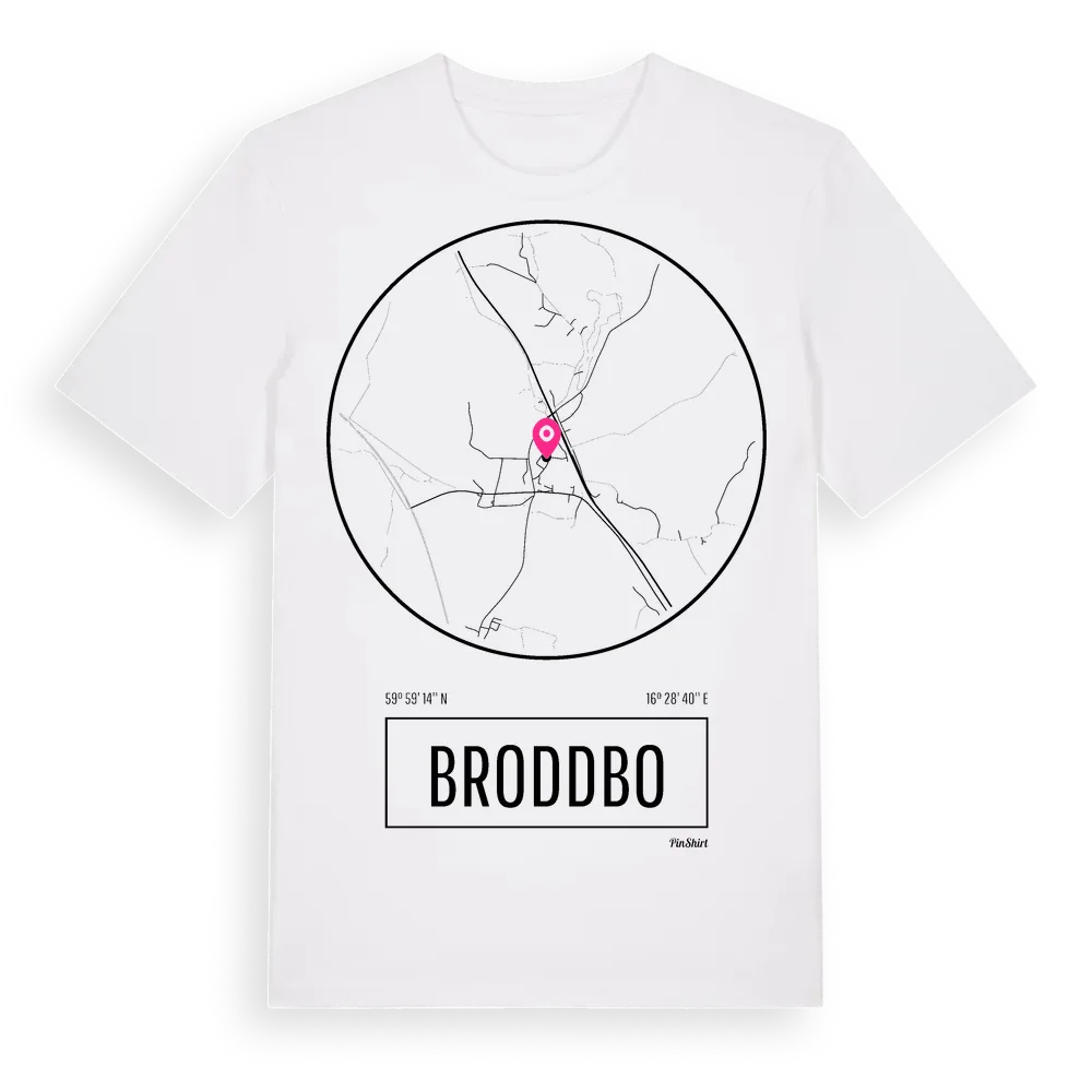 Broddbo t-shirt är inspirerad av byn Broddbo i Västmanlands län, Sverige. Tröjan är designad för dig som har en speciell koppling till platsen – oavsett om du bor här, har rötterna här eller bara älskar Broddbo.