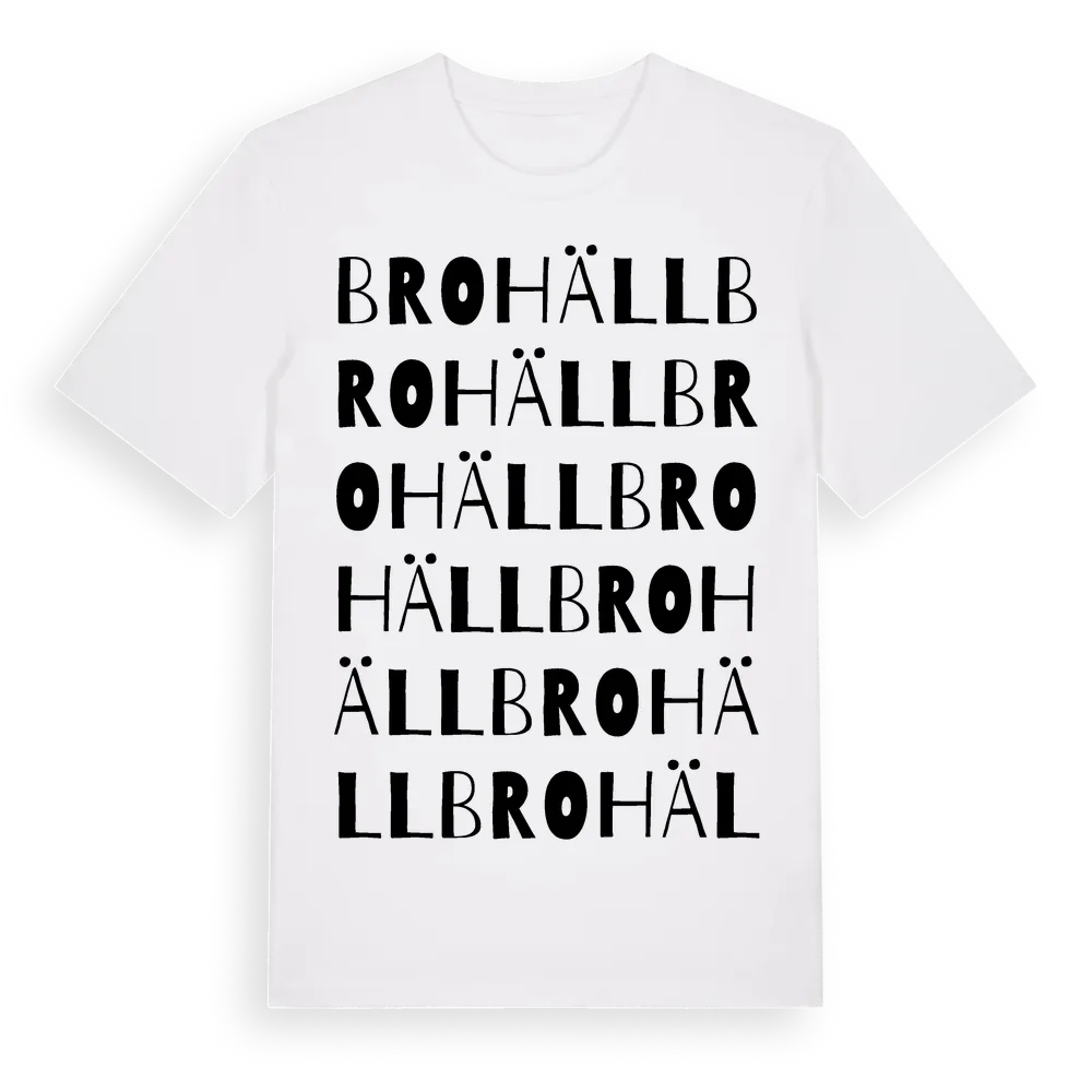 Brohäll ordlek t-shirt är inspirerad av Brohäll i Västmanlands län, Sverige. Tröjan är designad för dig som har en speciell koppling till platsen – oavsett om du bor här, har rötterna här eller bara älskar Brohäll.