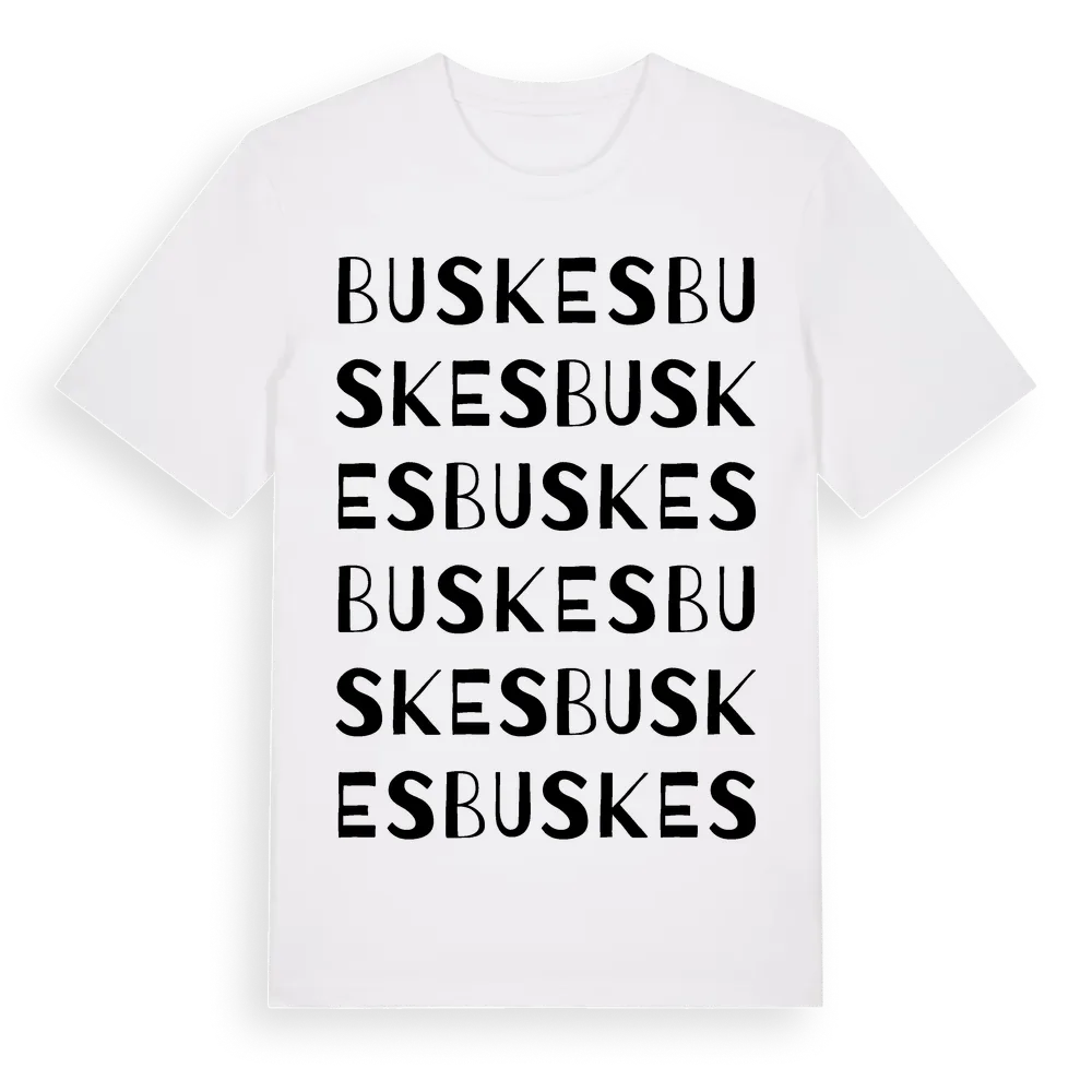 Buskes ordlek t-shirt är inspirerad av Buskes i Västmanlands län, Sverige. Tröjan är designad för dig som har en speciell koppling till platsen – oavsett om du bor här, har rötterna här eller bara älskar Buskes.