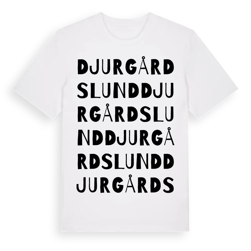 Djurgårdslund ordlek t-shirt är inspirerad av Djurgårdslund i Västmanlands län, Sverige. Tröjan är designad för dig som har en speciell koppling till platsen – oavsett om du bor här, har rötterna här eller bara älskar Djurgårdslund.