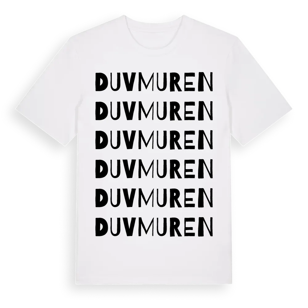 Duvmuren ordlek t-shirt är inspirerad av byn Duvmuren i Västmanlands län, Sverige. Tröjan är designad för dig som har en speciell koppling till platsen – oavsett om du bor här, har rötterna här eller bara älskar Duvmuren.