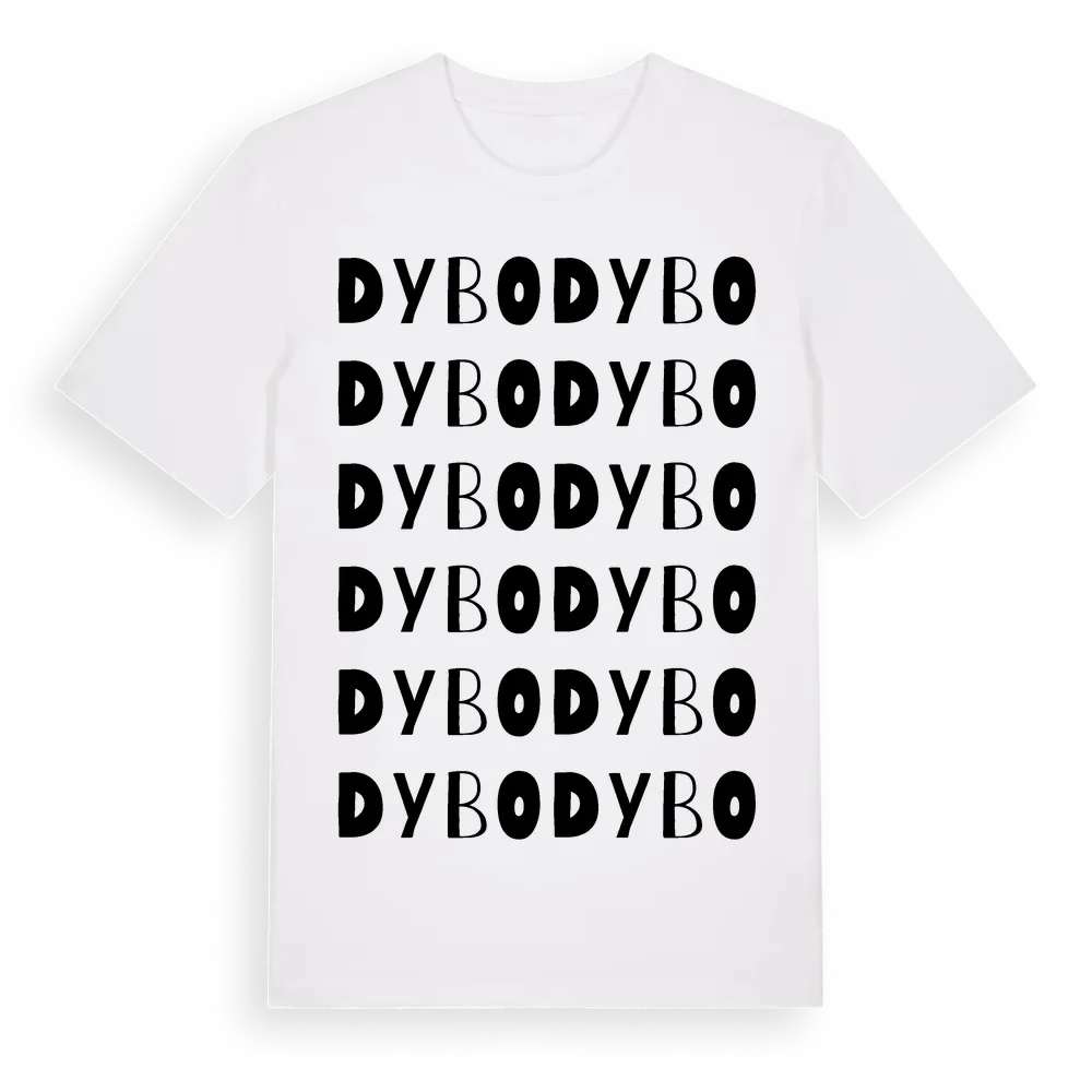 Dybo ordlek t-shirt är inspirerad av Dybo i Västmanlands län, Sverige. Tröjan är designad för dig som har en speciell koppling till platsen – oavsett om du bor här, har rötterna här eller bara älskar Dybo.