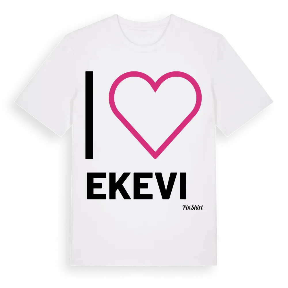 Jag älskar Ekevi t-shirt stort tryck är inspirerad av byn Ekevi i Västmanlands län, Sverige. Tröjan är designad för dig som har en speciell koppling till platsen – oavsett om du bor här, har rötterna här eller bara älskar Ekevi.