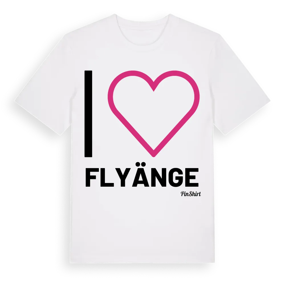Det klassiska "I ❤ Flyänge"-motivet i stort format som täcker hela bröstet. För dig som vill visa kärleken till Flyänge på riktigt. Premium bomull, unisex – från Flyänge i Västmanlands län.