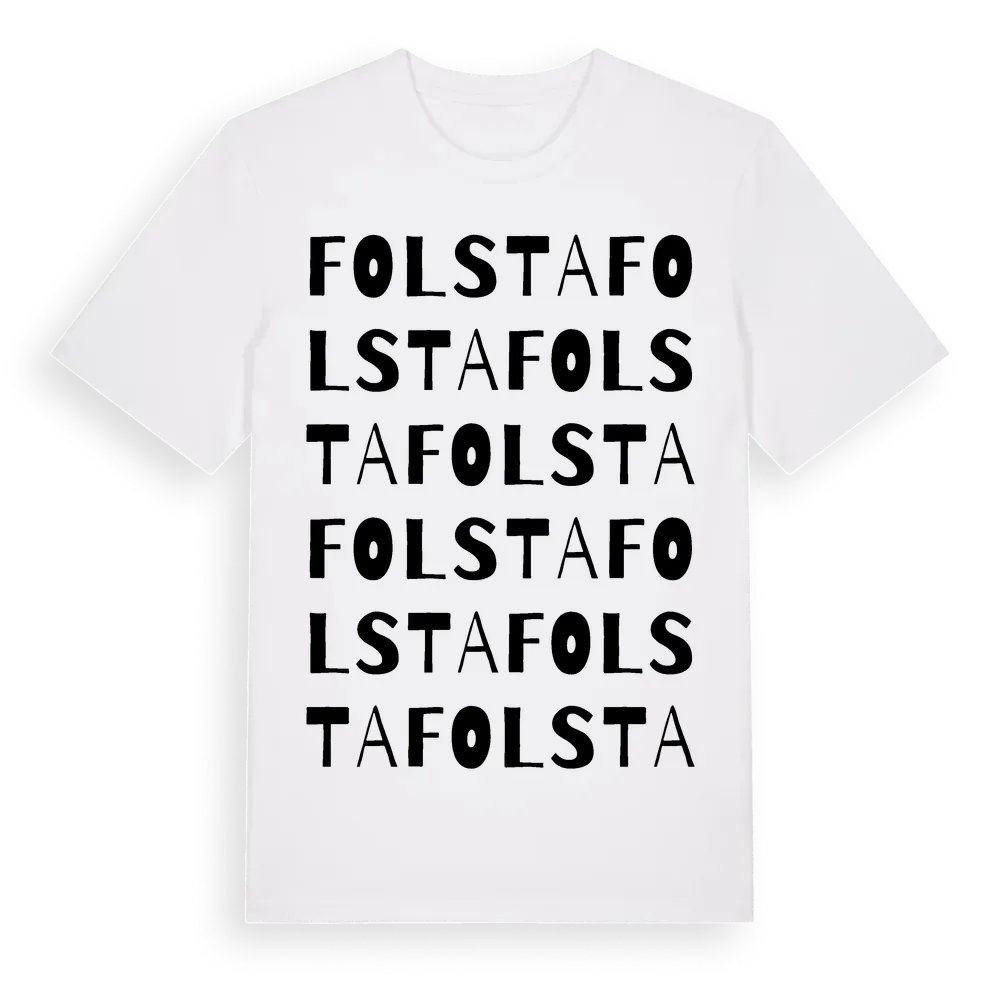 Folsta ordlek t-shirt är inspirerad av Folsta i Västmanlands län, Sverige. Tröjan är designad för dig som har en speciell koppling till platsen – oavsett om du bor här, har rötterna här eller bara älskar Folsta.