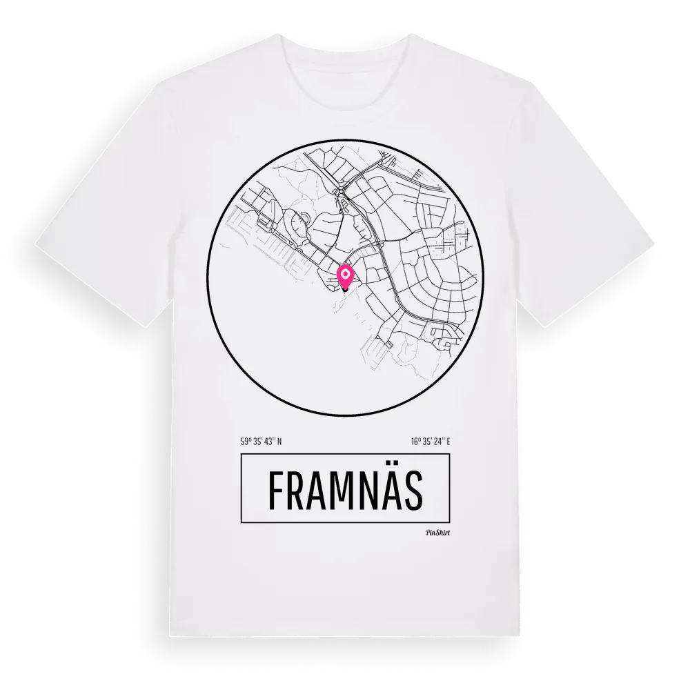 Ett rent, runt tryck med Framnäss namn. Minimalistiskt och stilrent – perfekt för den som känner platsen utan att skrika det. Premium bomull, unisex – från stadsdelen Framnäs i Västmanlands län.