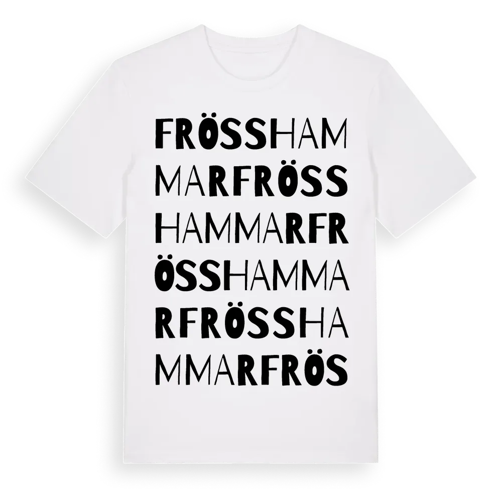 Frösshammar ordlek t-shirt är inspirerad av Frösshammar i Västmanlands län, Sverige. Tröjan är designad för dig som har en speciell koppling till platsen – oavsett om du bor här, har rötterna här eller bara älskar Frösshammar.