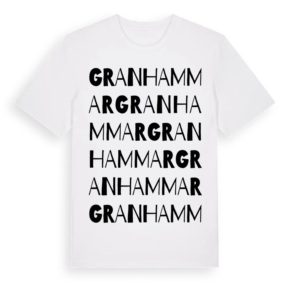 Granhammar ordlek t-shirt är inspirerad av byn Granhammar i Västmanlands län, Sverige. Tröjan är designad för dig som har en speciell koppling till platsen – oavsett om du bor här, har rötterna här eller bara älskar Granhammar.
